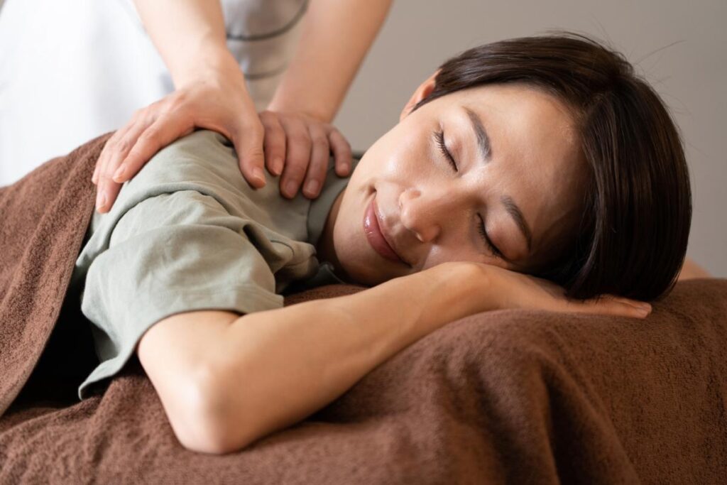 5分ほどの整体施術を行い骨格などの異常を整えたあとに、55分間のリラクゼーションのもみほぐしを行っていきます。(計60分間)